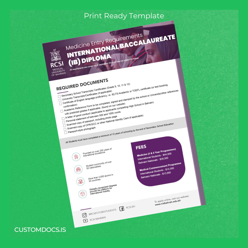The customizable degree template category offers a digital savior: the Bahrain RCSI Medical University Bachelor of International Baccalaureate Diploma Template – Word & PDF. This expertly crafted template is engineered for professionals requiring an editable, print-ready diploma that accurately reflects their academic achievement with minimal delay.