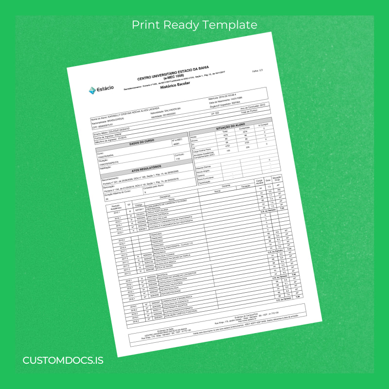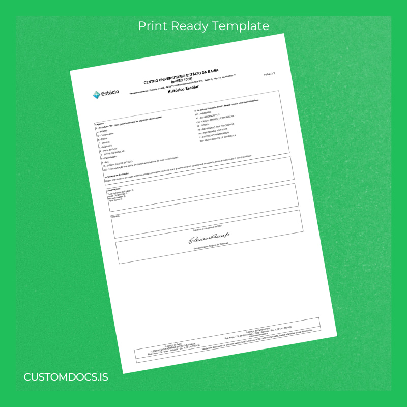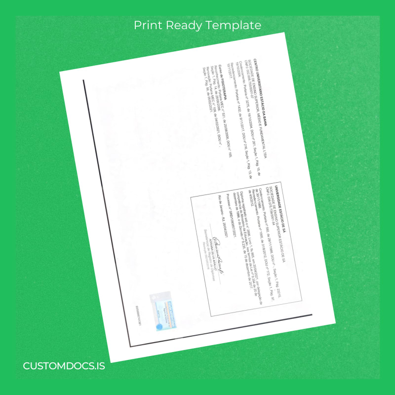 Our Brazil Centro Universitário Estácio de Sá High School Diploma Template – Word & PDF offers an immediate, editable, and professionally designed alternative. Perfect for those needing a replacement diploma form or a customizable degree template, this novel digital diploma download ensures seamless editing and swift printing.