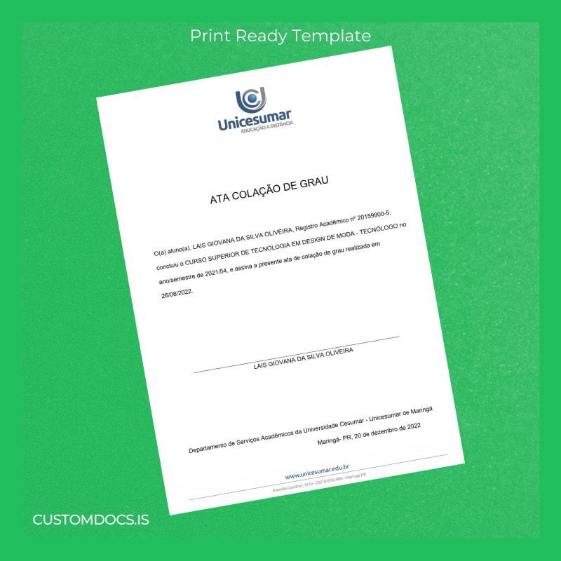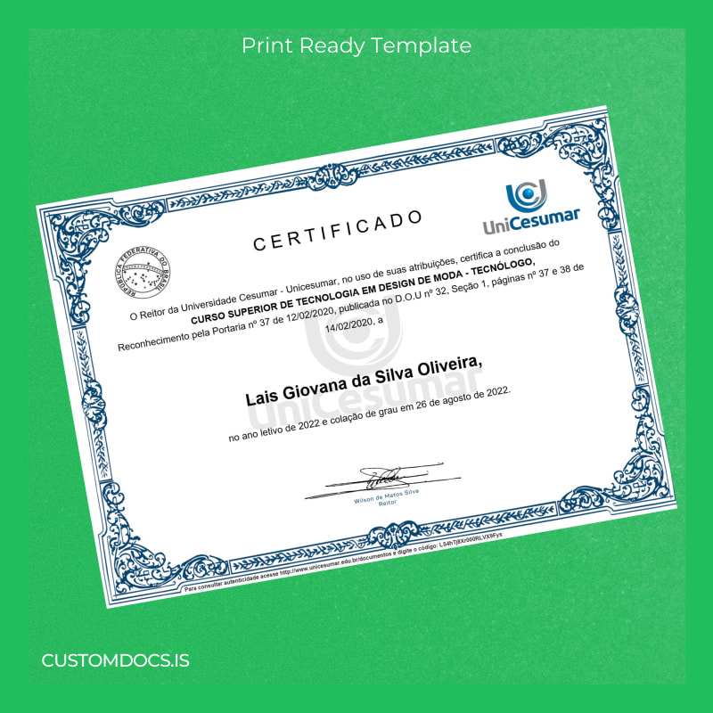 - Designed specifically for Brazil Cesumar University graduates in fashion design, guaranteeing accuracy and relevance.