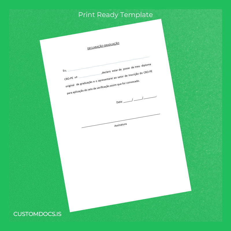 Losing an important diploma or needing a quick replacement can cause significant stress and disrupt your professional plans. Delays in obtaining official documents often lead to missed deadlines and extended bureaucratic processes, which can be frustrating and costly. Fortunately, the Brazil CRO-PE Diploma Template – Word & PDF offers an immediate, editable solution designed for professionals who require a fast and customizable replacement.