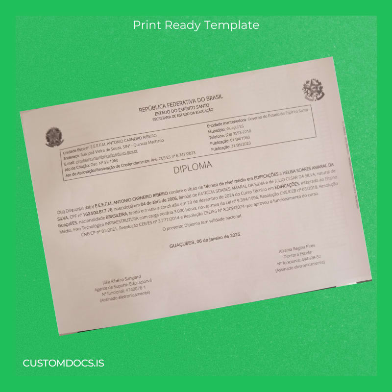 With its professional-grade design and ease of use, the Brazil E.E.F.M. ANTONIO CARNEIRO RIBEIRO Technologist Diploma in Building Construction Template – Word & PDF ensures you can restore or create your diploma in no time, maintaining your credibility and advancing your career without interruption.