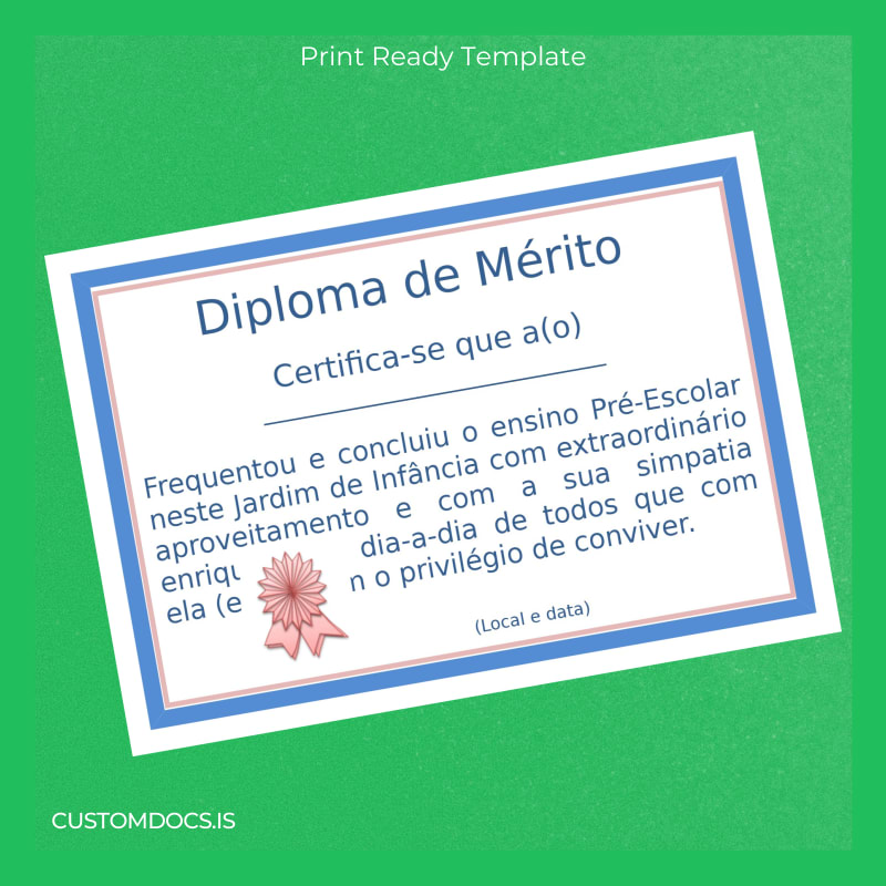 Our customizable degree template offers a streamlined path to quickly obtain a high-quality Brazil Educational Institution Diploma of Merit Template in both Word and PDF formats. Designed specifically for those needing an editable and professional replacement diploma document, this template empowers users to personalize their certificate details promptly while maintaining official and elegant aesthetics.