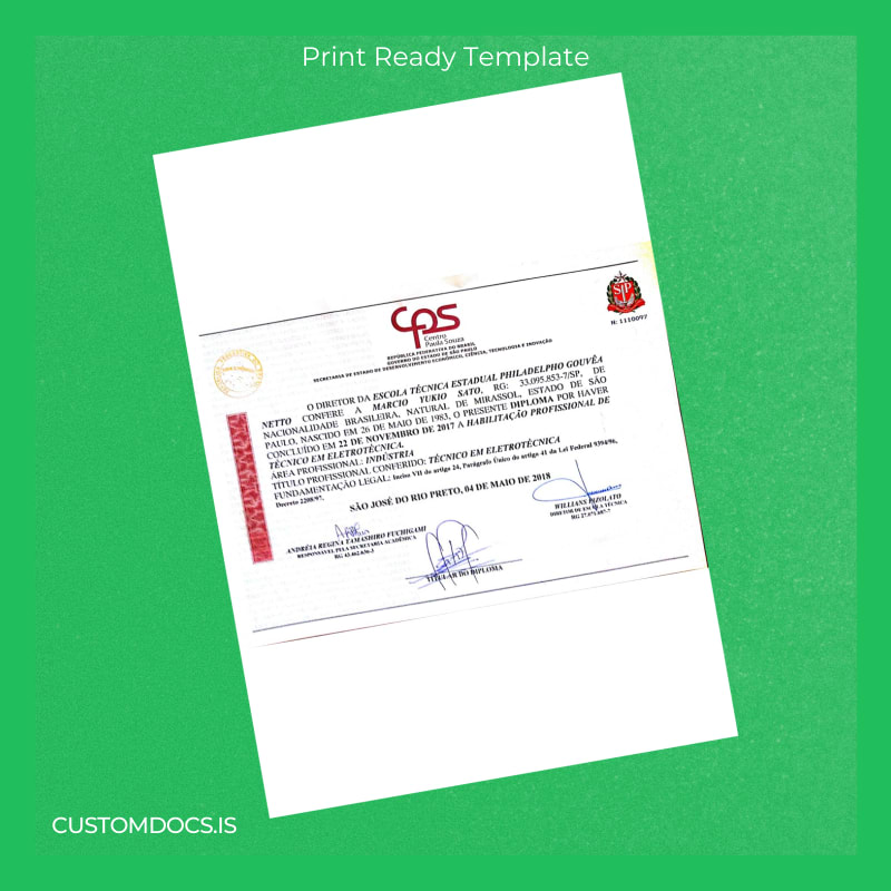 Ensure Seamless Replacement with Brazil Escola Técnica Estadual Philadelpho Gouveia Netto Technical Diploma in Electrotechnics Template – Word & PDF