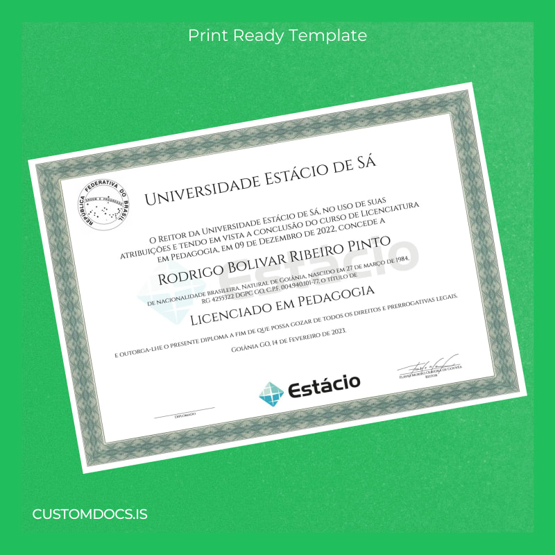 Ensure Immediate Replacement with the Brazil Estácio de Sá Licensed in Pedagogy Diploma Template – Word & PDF