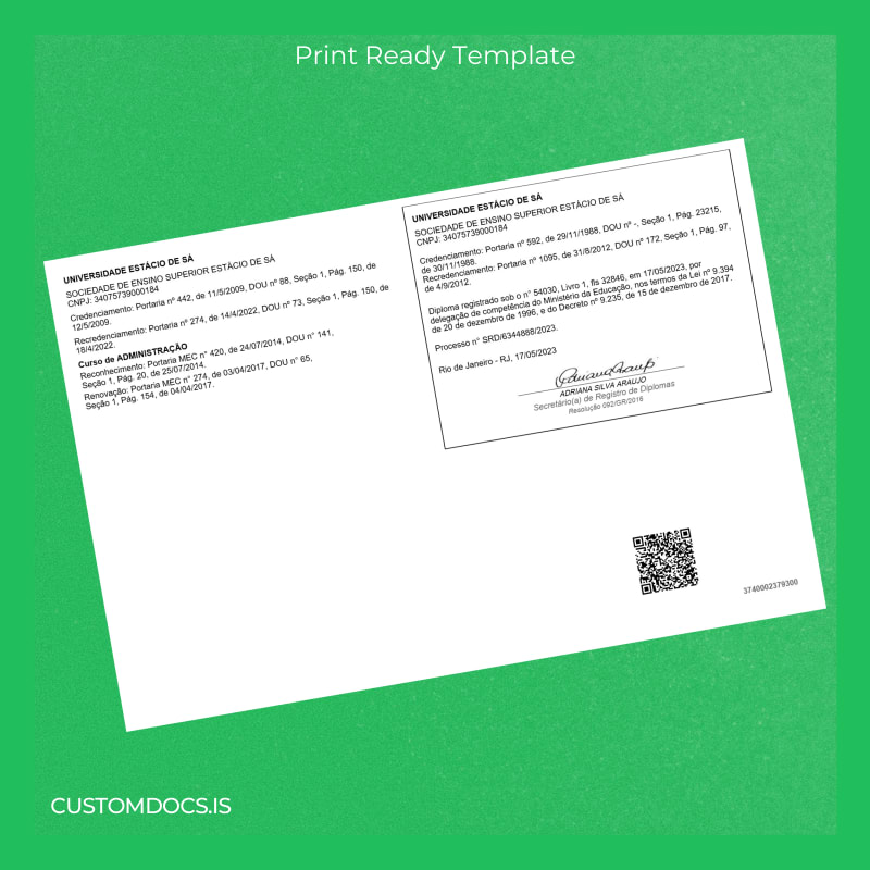 Losing your Brazil Estácio University Bachelor of Business Administration diploma or urgently needing a replacement can be a stressful experience. The bureaucratic delays of obtaining an official duplicate, coupled with potential missed deadlines at work or school, add to the pressure of resolving this issue swiftly.