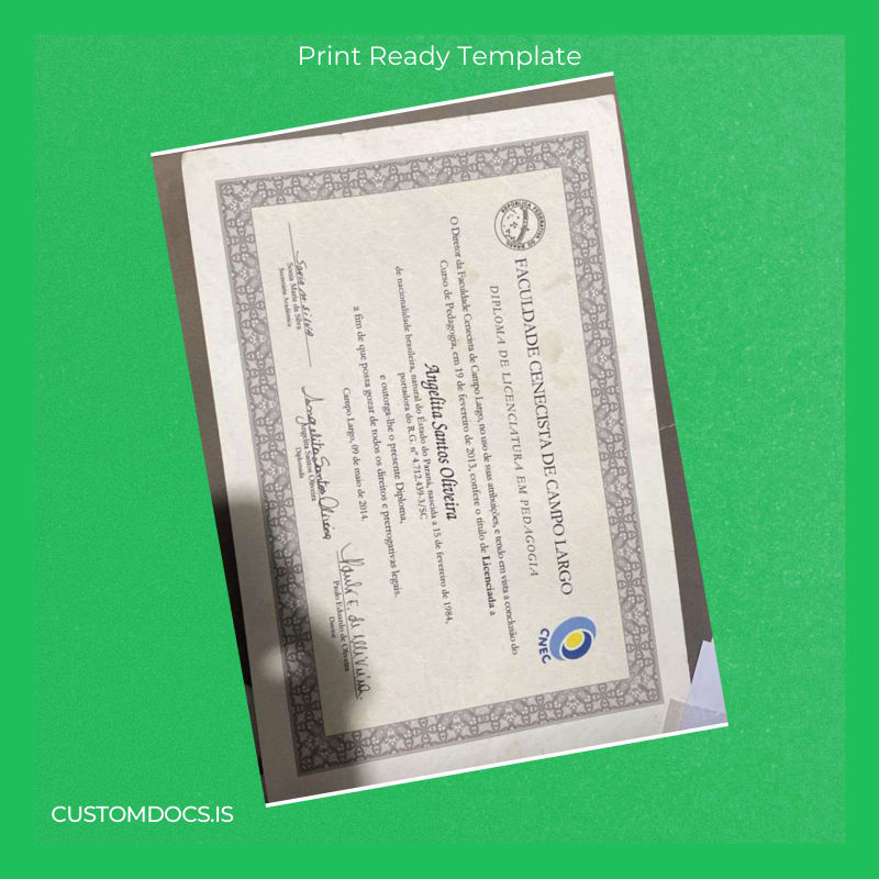 - Designed to mirror the official Brazil Faculty of Campo Largo Bachelor of Education diploma for authenticity.