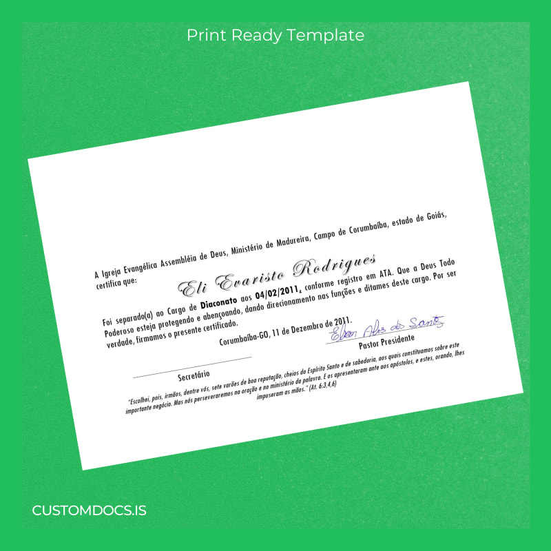 - Designed specifically for the Brazil Igreja Evangélica Assembléia de Deus Diaconate certificates ensuring authenticity and tradition