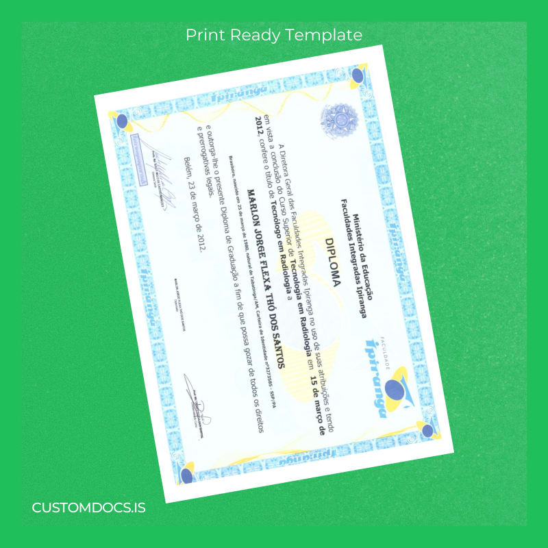 Get Your Brazil Ipiranga Faculty Technology in Radiology Diploma Template – Word & PDF Instantly