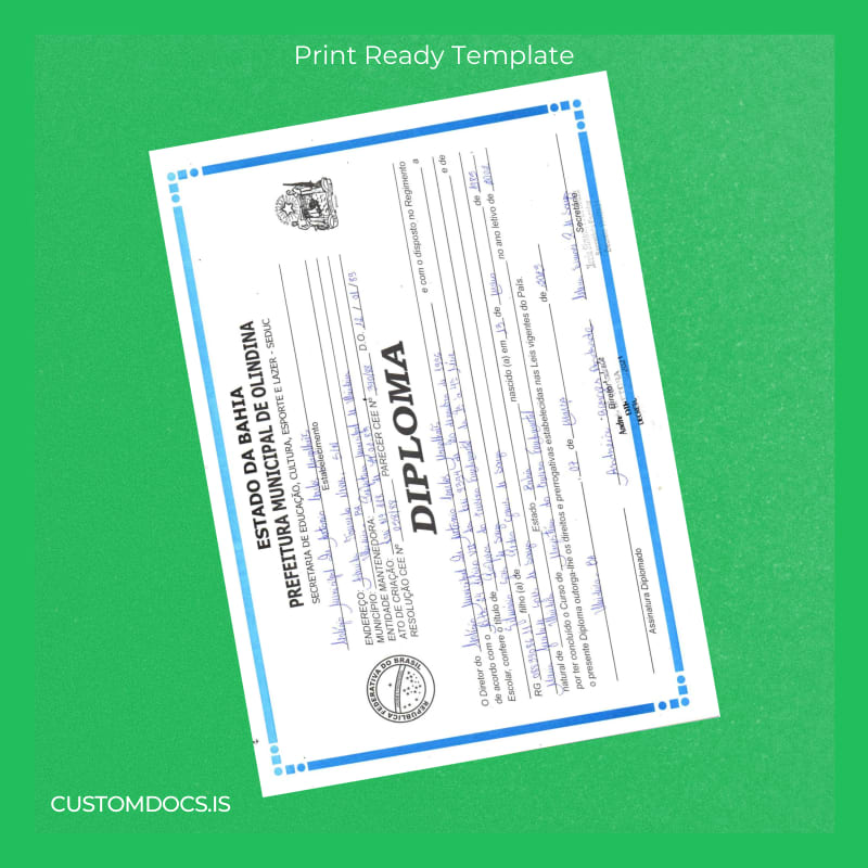 Don’t let delays hinder your progress. The Customizable Degree Template series introduces the Brazil Municipal Education Prefectural High School Diploma Template – Word & PDF, designed for quick and simple editing to meet your urgent needs.