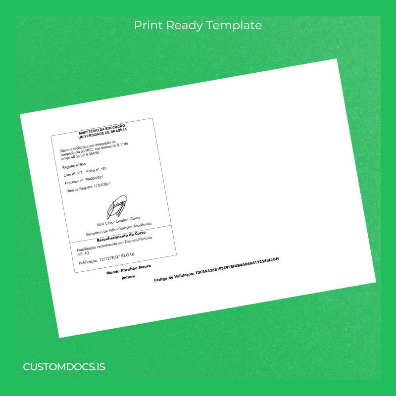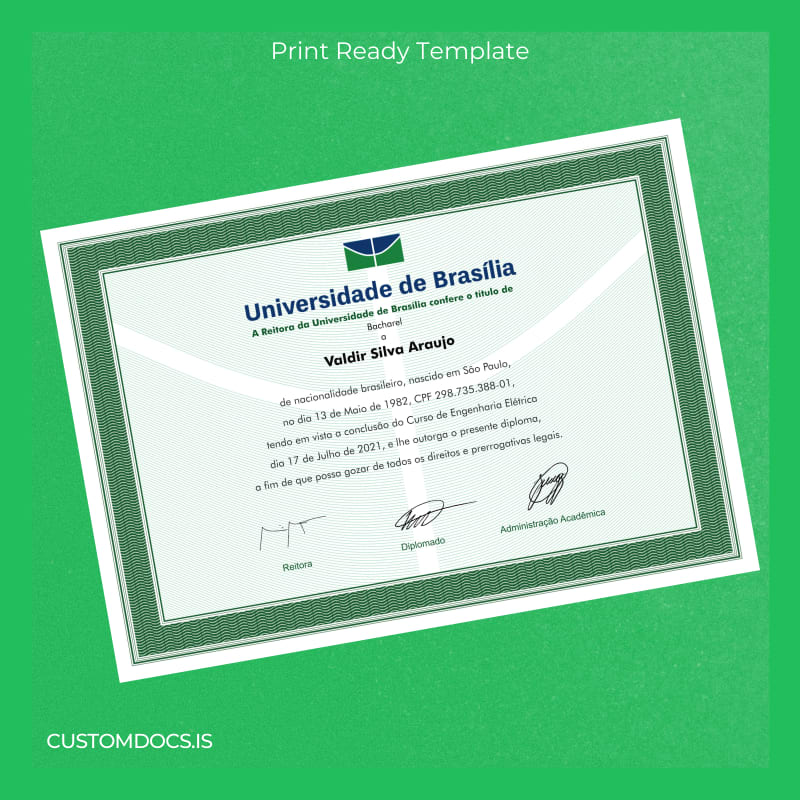 The Brazil Universidade de Brasília Bachelor of Electric Engineering Template – Word & PDF provides a fully editable and professionally designed diploma template that you can customize instantly. Ideal for graduates, educational institutions, and professionals who need a prompt replacement or a clean, editable diploma form, this digital file ensures you have a high-quality copy ready for print or digital use.