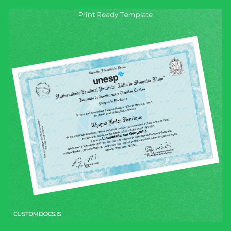 - Designed specifically for Brazil Universidade Estadual Paulista _Júlio de Mesquita Filho_, providing an authentic and novel diploma design.