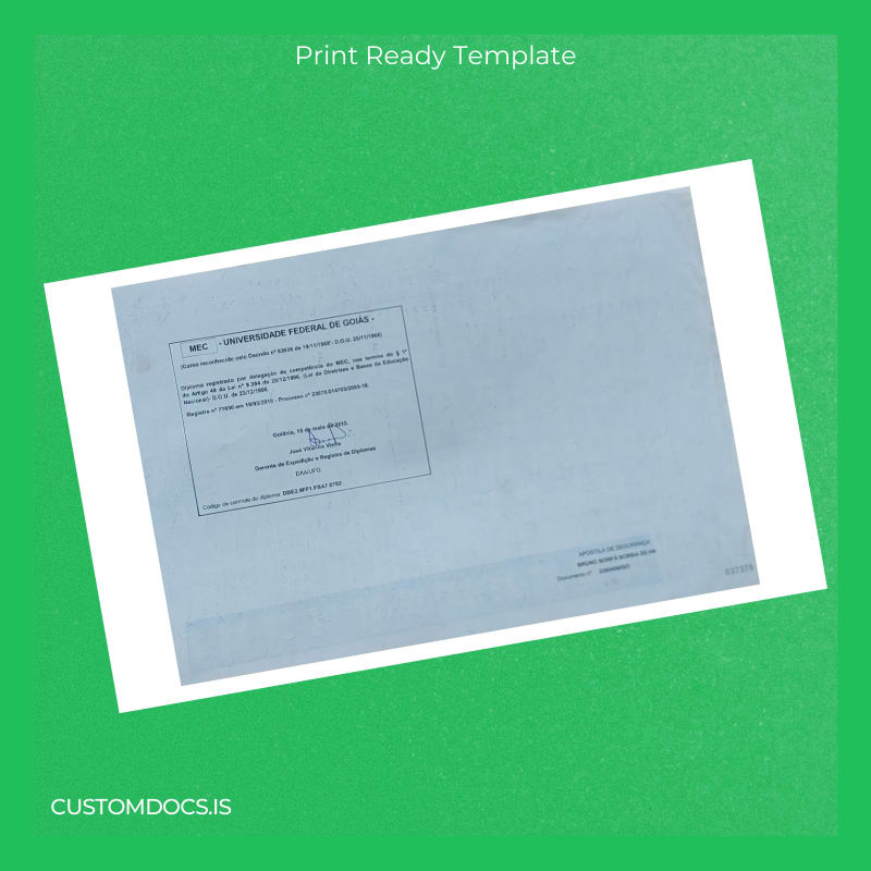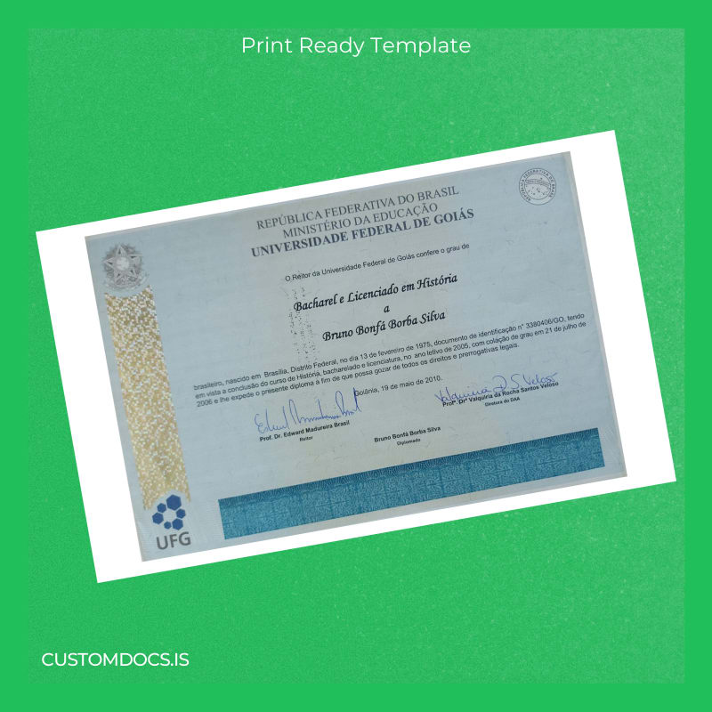 Losing your important academic document or facing extended delays for a replacement can disrupt your professional and personal plans. If you need a swift solution without the bureaucratic maze and waiting times, our Brazil Universidade Federal de Goiás Bachelor of Arts in History Template – Word & PDF provides exactly what you need.