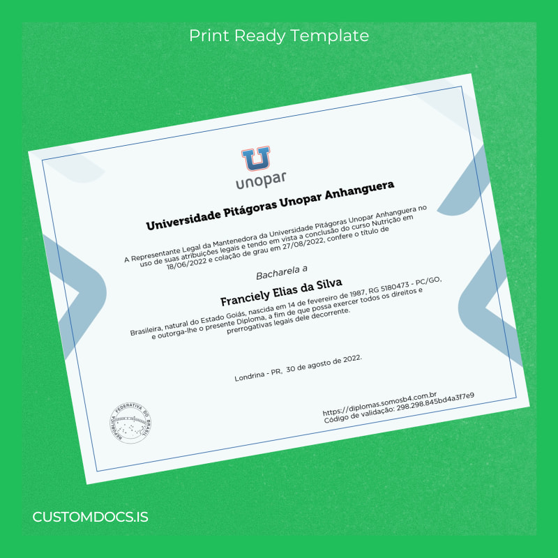 Losing your Brazil Universidade Pitágoras Bachelor of Nutrition diploma can cause major stress and disrupt your professional progress. Facing bureaucratic hurdles, long wait times, and the risk of missing critical deadlines is daunting. Without a quick solution, you may find yourself stalled in job applications or academic pursuits.