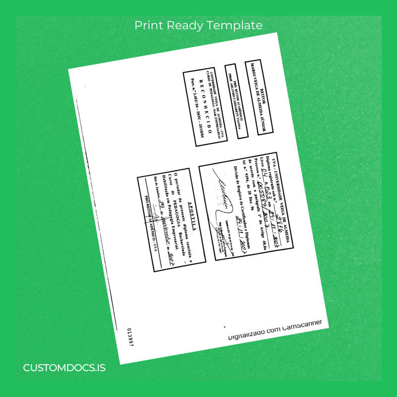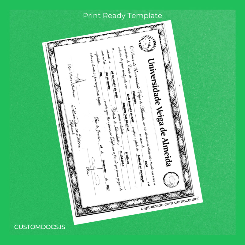 Losing an important document such as your Bachelor in Education diploma can cause significant stress and disrupt your professional progress. The bureaucratic hurdles and prolonged waiting times for official replacements often result in missed career opportunities and deadlines. The Brazil Veiga de Almeida University Bachelor in Education Template – Word & PDF offers an immediate and reliable alternative to overcome these challenges, enabling you to quickly obtain a professional, editable, and print-ready diploma.