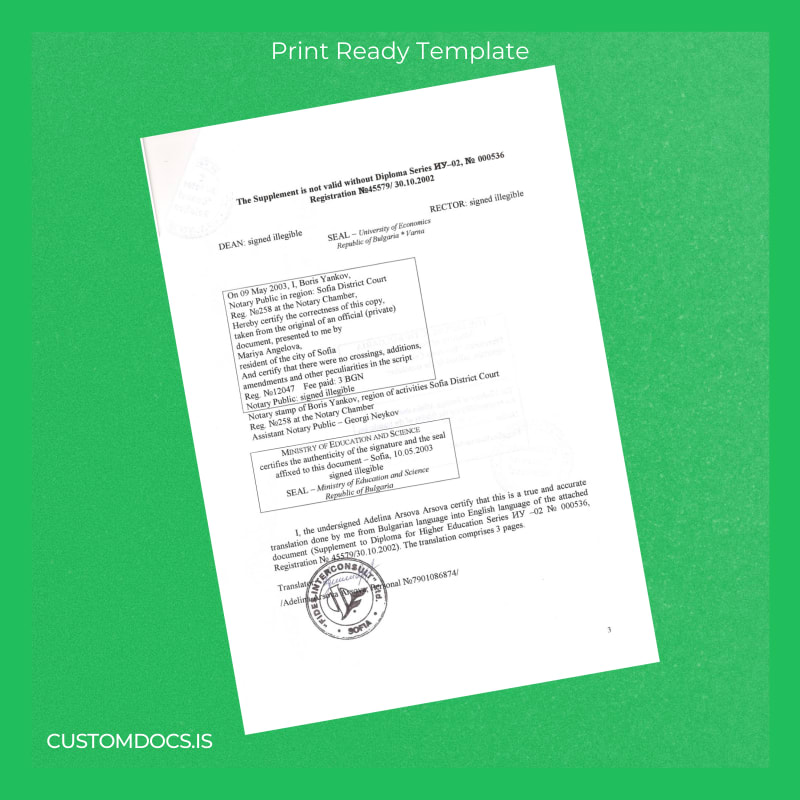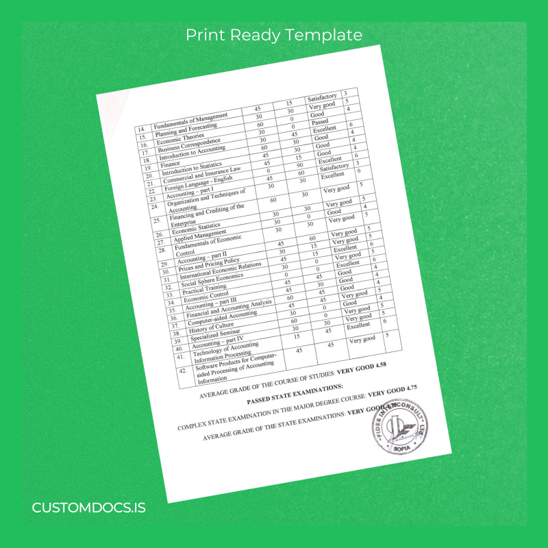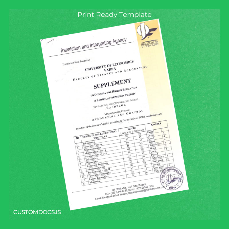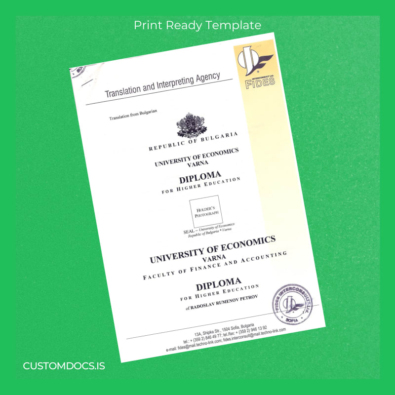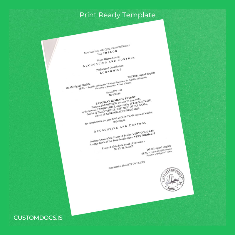 - Designed to match the official Bulgaria University of Economics Varna diploma specifications for authenticity.