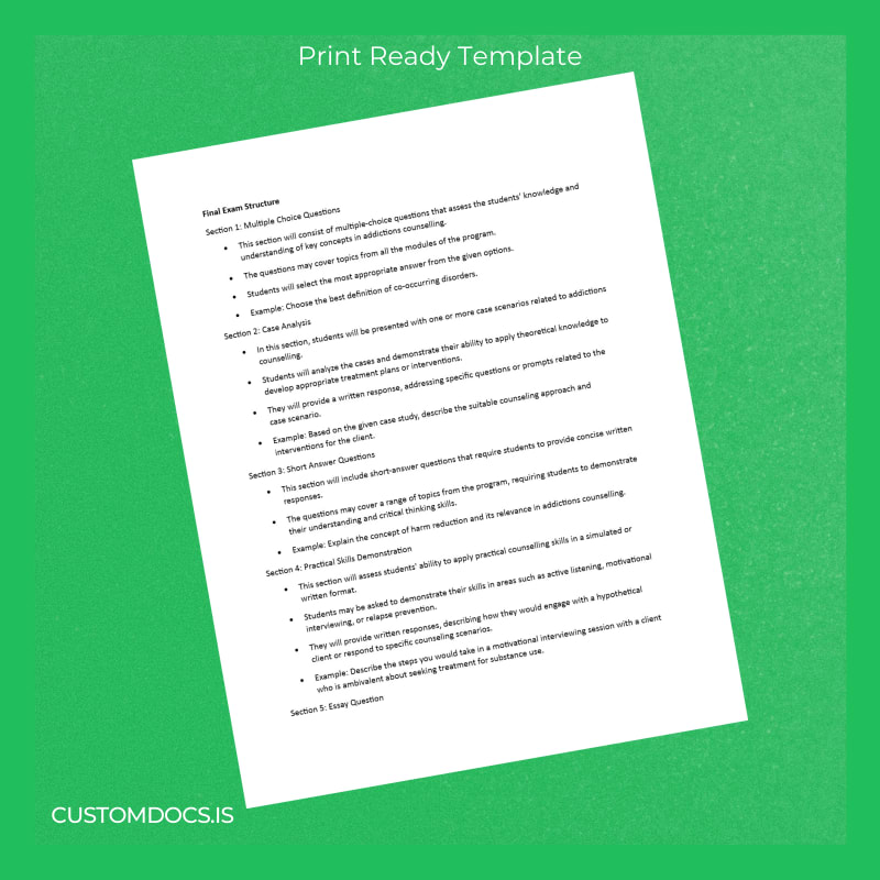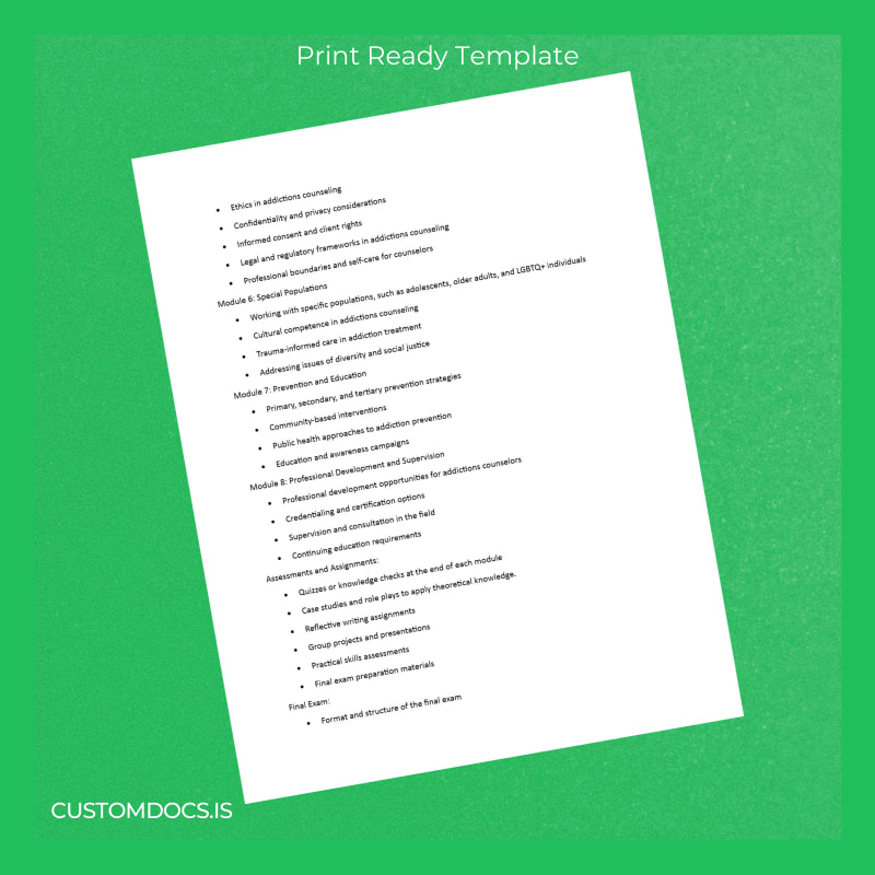 Download Canada Institute Name Diploma in Addictions Counselling Template – Word & PDF – Instant Digital File 7 Page