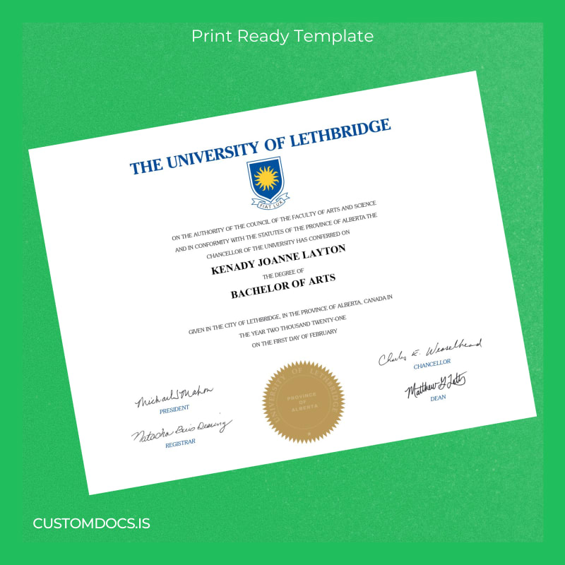 The stress of losing an important academic document or requiring a rapid replacement can be overwhelming. Delays, bureaucratic hurdles, and the anxiety of missing critical deadlines pose significant challenges for graduates and professionals alike. Fortunately, the Canada University of Lethbridge Bachelor of Arts Template – Word & PDF provides an immediate, editable, and printable solution designed specifically for these urgent situations.
