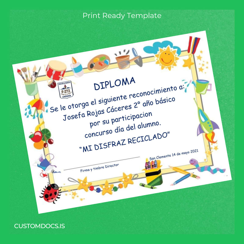 • Designed specifically for educational institutions like Chile Escuela Básica with accurate styling consistent with official diplomas.