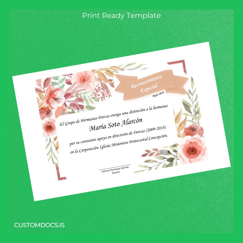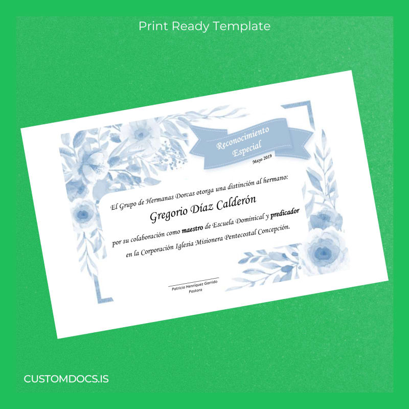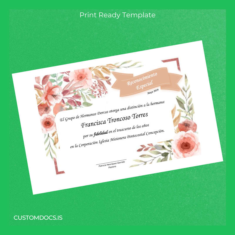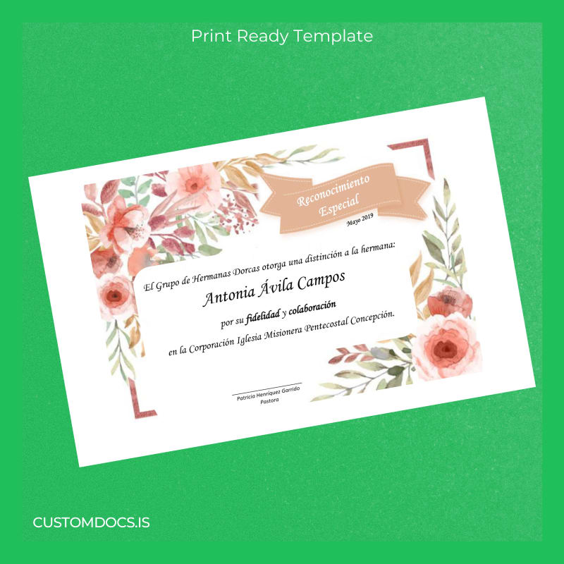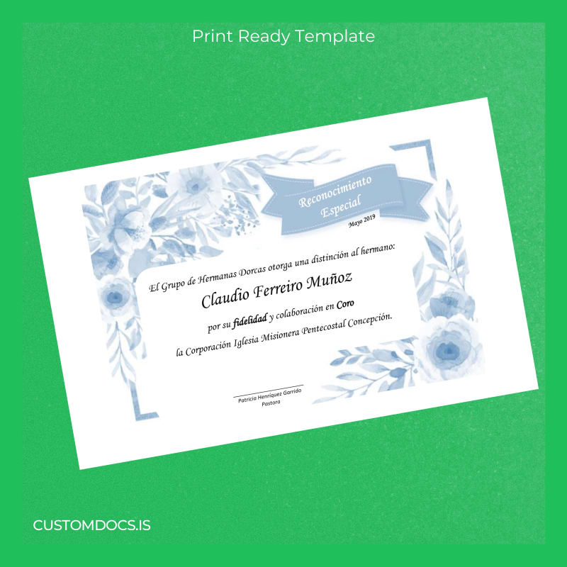 Choose this Chile Iglesia Misionera Pentecostal Concepción Diploma Template – Word & PDF to gain confidence from its customizable structure and professional craftsmanship, ensuring your credentials impress and comply effectively.
