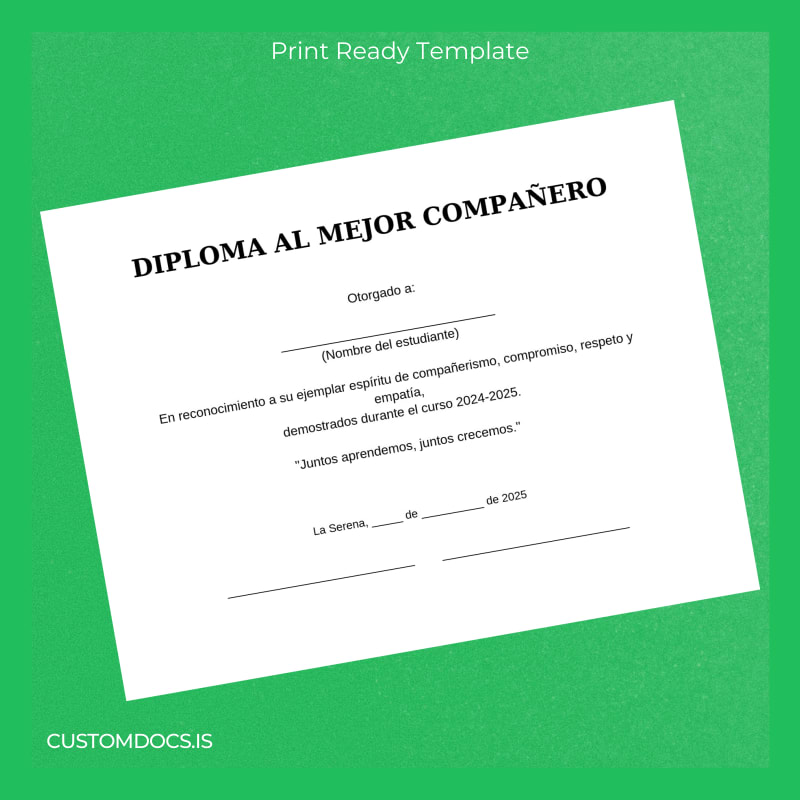 Get Your Chile La Serena Mejor Companero Diploma Template – Word & PDF Instantly