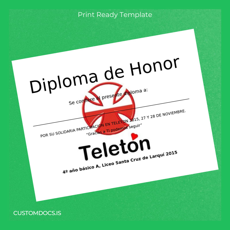 Download Chile Liceo Santa Cruz de Larquí Honor Diploma Template – Word & PDF – Instant Digital File