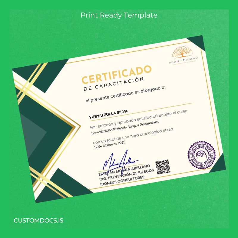 Facing the stress of a lost certification or urgently needing a replacement can disrupt your professional progress. Delays caused by administrative procedures might result in missed opportunities or deadlines, making it crucial to find a swift and reliable solution. The Chile Saint-Honoré Certificate of Training Template – Word & PDF offers an immediate remedy, enabling you to restore your credentials with ease and accuracy.