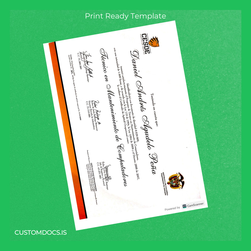 Introducing the Colombia Cesde Technical Diploma in Computer Maintenance Template – Word & PDF, an editable and customizable solution designed to provide immediate relief. Avoid lengthy and complicated processes by using this digital diploma download, perfect for professionals who require quick access to a reliable and professionally designed diploma form.