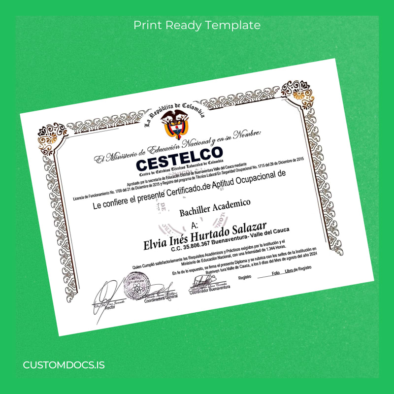 The Colombia CESTELCO Occupational Aptitude Certificate Template – Word & PDF offers a professional, fully customizable certificate template designed for immediate download and use. This digital diploma download ensures you can swiftly generate a polished occupational aptitude certificate in editable Word and PDF formats.