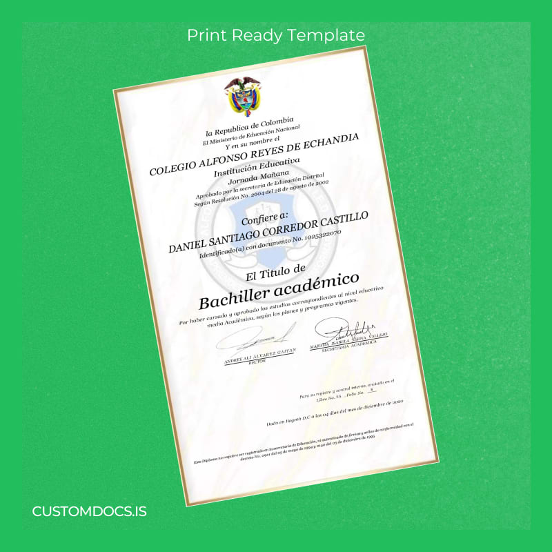 Embrace the simplicity and reliability of a structurally sound and aesthetically polished design crafted specifically for the Colombia Colegio Alfonso Reyes de Echan dia High School community, ensuring your diploma looks authentic and professional. Whether you are replacing a lost certificate or creating a backup document, this customizable Word and PDF template guarantees speed, accuracy, and quality in your diploma management.