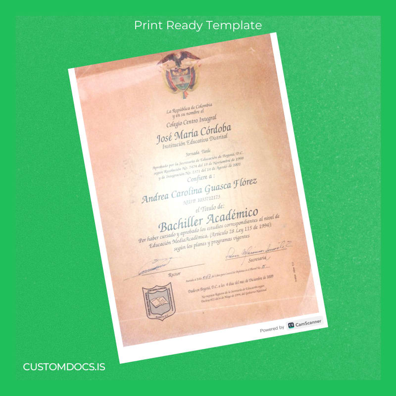 Introducing the Colombia Colegio Centro Integral José María Córdoba High School Diploma Template – Word & PDF, a fully editable and professional replacement diploma template designed to save you time and effort. This easy-to-use template ensures that you can create a flawless and accurate digital diploma quickly. Whether you require a blank diploma form for reissuing or a novelty diploma design for presentation purposes, this customizable degree template covers all your needs.