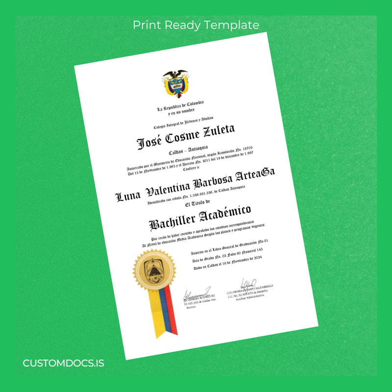 Don’t let missing documents stall your career. The Colombia Colegio Integral de Jóvenes y Adultos Bachiller Académico Template – Word & PDF offers an immediate, editable, and print-ready option that ensures you stay on track. This comprehensive customizable degree template allows you to quickly recreate your diploma with precision and professionalism.
