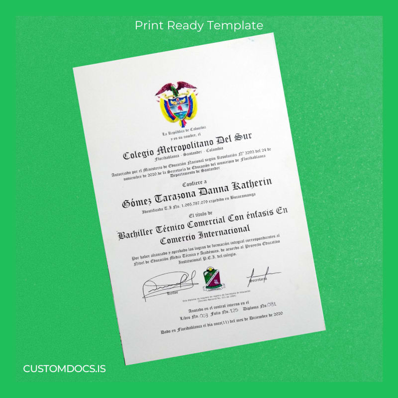 Instantly Replace Your Colombia Colegio Metropolitano del Sur Diploma