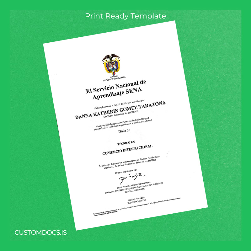 Losing an important educational credential such as the Colombia Colegio Metropolitano del Sur Bachelor of Technical Commercial Education with Emphasis in International Business diploma can cause unexpected stress and disruption. The process of obtaining an official replacement often involves lengthy bureaucratic delays, complex paperwork, and missed professional opportunities.