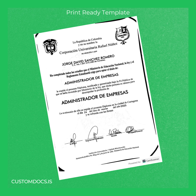 Losing your important academic certifications, such as your Bachelor of Business Administration diploma from Colombia Corporación Universitaria Rafael Núñez, can cause immense stress and jeopardize your professional credibility. Without immediate access to a valid document, you risk bureaucratic delays, missed opportunities, and unnecessary frustrations in academic or career processes.