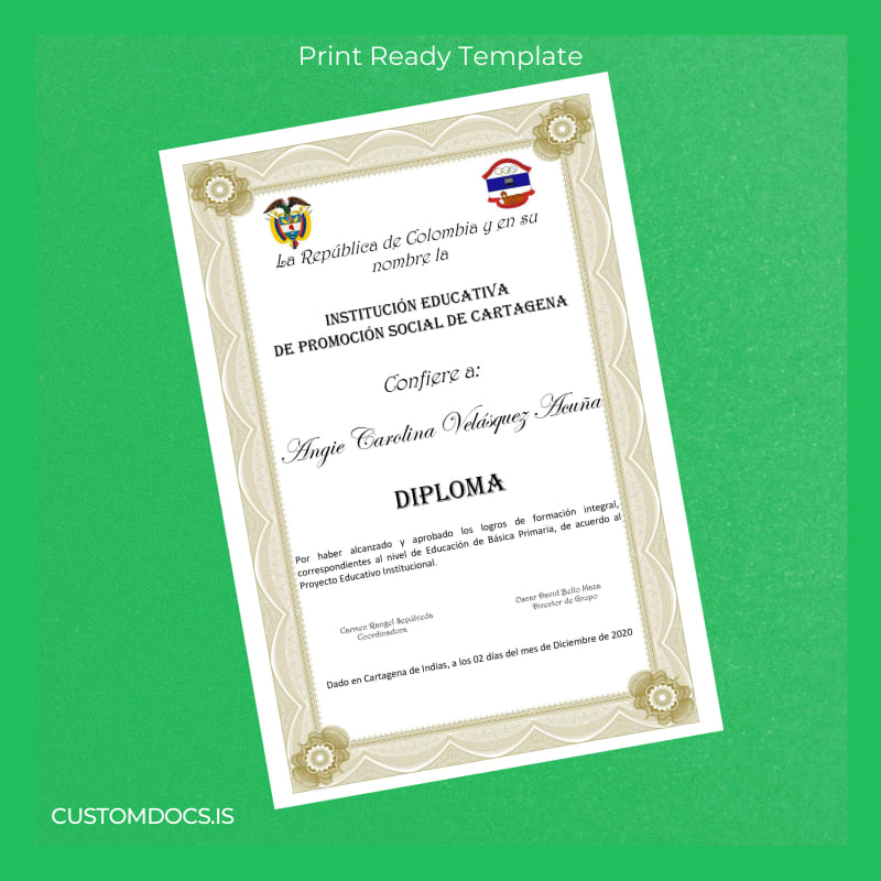 Get Your Colombia Educational Institution for Social Promotion of Cartagena Primary Education Diploma Template Instantly
