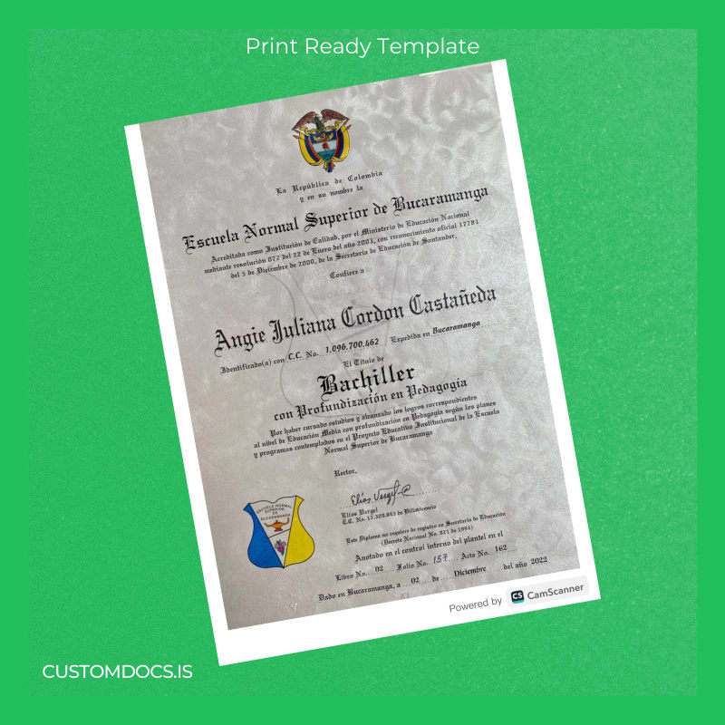 - Perfectly aligns with the official Colombian Escuela Normal Superior de Bucaramanga diploma style