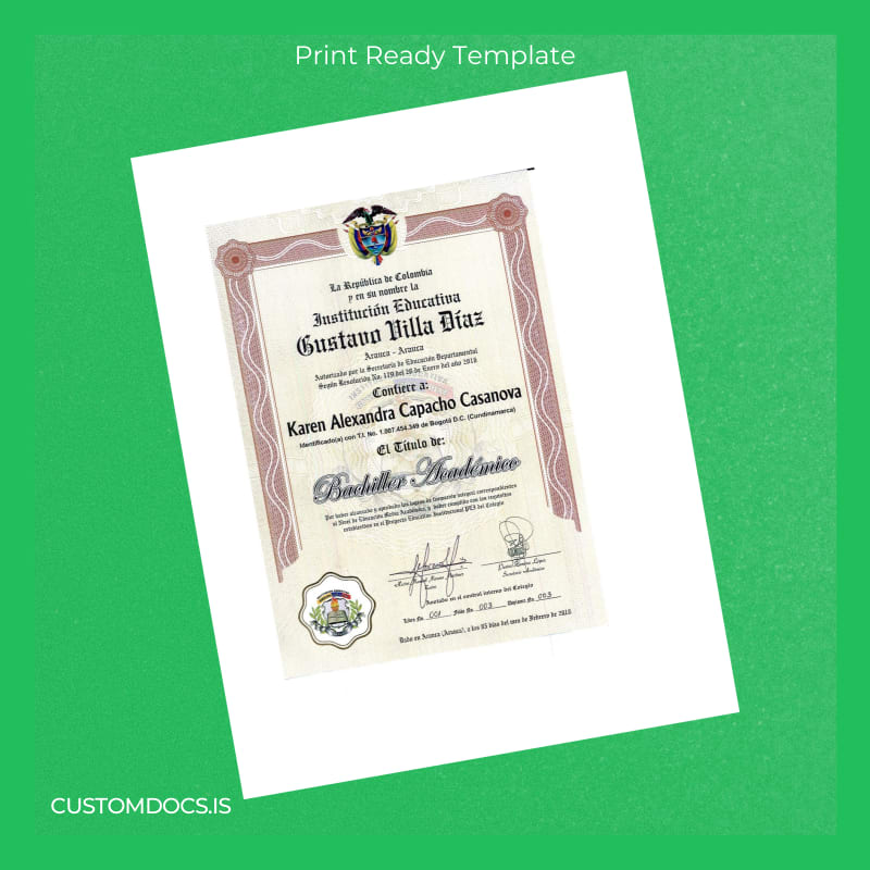 Be the first to review “Download Colombia Gustavo Villa Díaz Academic Bachelor Diploma Template – Word & PDF – Instant Digital File”