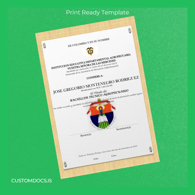 But there’s a fast, reliable solution ready for professionals like you. The Colombia Institución Educativa Departamental Agropecuaria Nuestra Señora de las Mercedes Technical High School Diploma Template – Word & PDF offers a fully editable and customizable document designed to restore your academic credentials with professional precision.