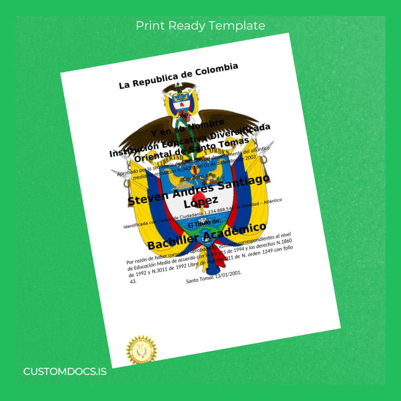 Losing your bachelor diploma can create an urgent and stressful situation complicating career progress or further education plans. Navigating the tedious processes of obtaining official document replacements can result in frustrating delays and potential missed opportunities. The Colombia Institución Educativa Diversificada Oriental de Santo Tomás Academic Bachelor Diploma Template – Word & PDF offers an immediate solution for professionals needing a reliable, editable, and print-ready document to bridge such gaps.