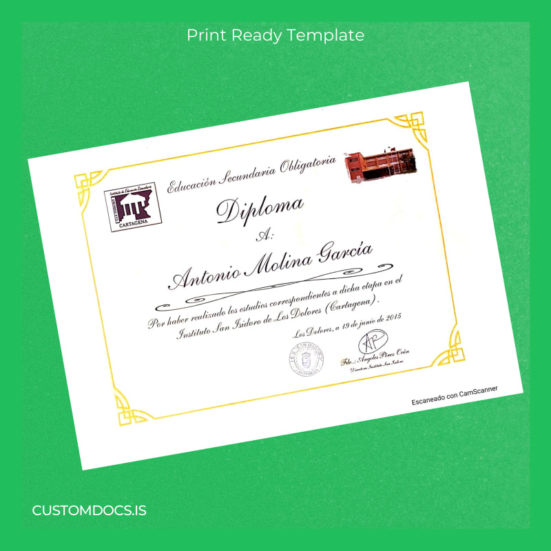 • Professional layout designed to reflect the official standards of the Instituto San Isidro de Los Dolores High School diploma.