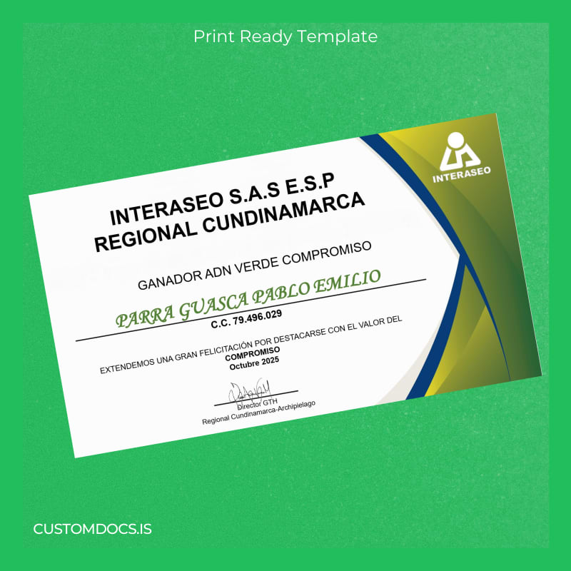 Our Colombia INTERASEO S.A.S E.S.P Commitment Award Diploma Template – Word & PDF offers a dependable and efficient alternative. This customizable degree template provides immediate digital access to a professionally designed, blank diploma form, ensuring your replacement is available exactly when you need it. Perfect for professionals who require a prompt and polished solution, this template supports seamless editing to match your personal details and specific award information.