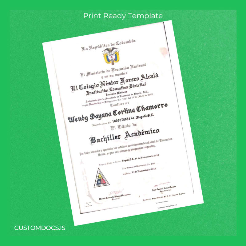 Download Colombia Nestor Forero Alcála High School Diploma Template – Instant Digital File