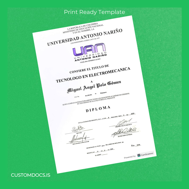 Fortunately, the Colombia Universidad Antonio Nariño Technologist in Electromechanics Diploma Template – Word & PDF offers a quick and reliable solution. This fully editable and customizable digital diploma template provides professionals an immediate way to recreate their academic certificates with accuracy and professionalism.