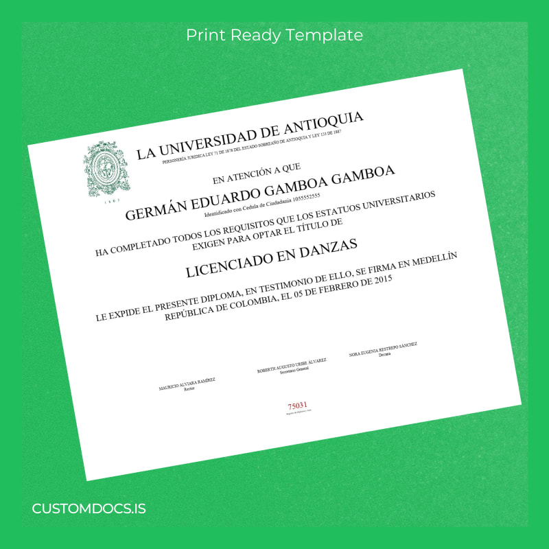 Colombia University of Antioquia Bachelor of Arts in Dance Certificate Template – Word & PDF