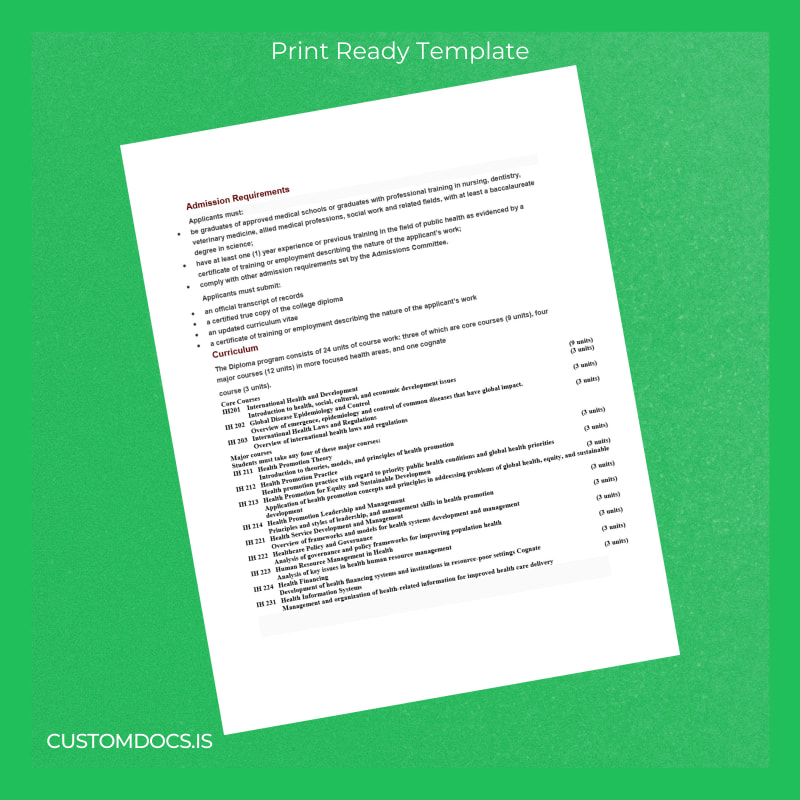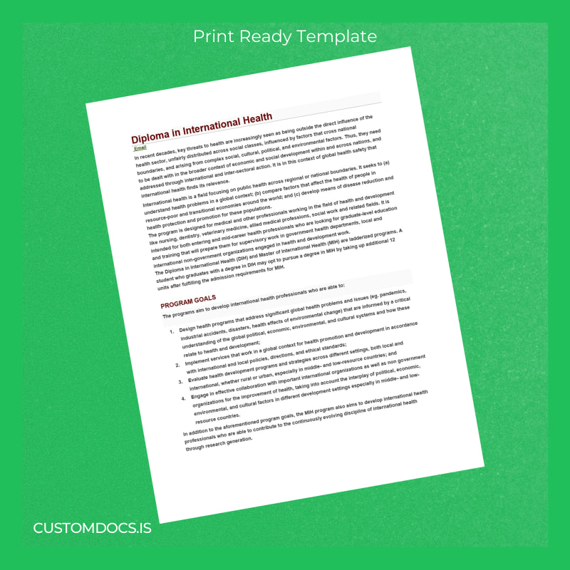 Seamless Customization with the Country Unknown Institute_University Name Unknown Diploma in International Health Template – Word & PDF