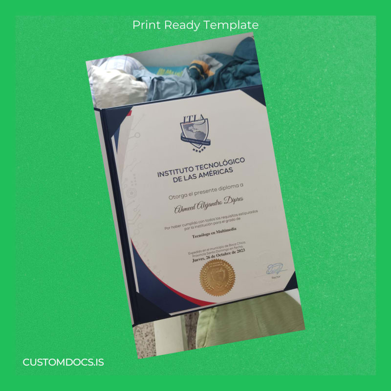 The Dominican Republic Instituto Tecnológico de las Américas Technologist in Multimedia Template – Word & PDF offers a professional, convenient, and instant solution. This editable diploma template ensures you can customize and print your replacement diploma immediately, avoiding long waits and complicated processes.