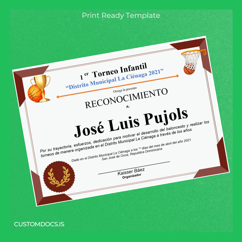 Download the editable Dominican Republic Recognition Certificate for José Luis Pujols Template – Word & PDF. Customize and replace your diploma instantly.
