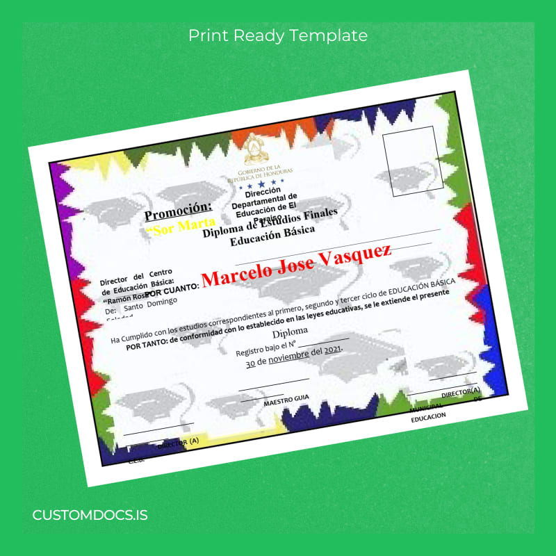 Losing an important academic document like your diploma can cause significant stress and disrupt your professional progress. The inability to present valid proof of education can lead to missed job opportunities, delayed applications, or bureaucratic complications. Avoid these hassles by utilizing a ready-made, editable diploma template tailored for the Dominican Republic University of Santo Domingo.