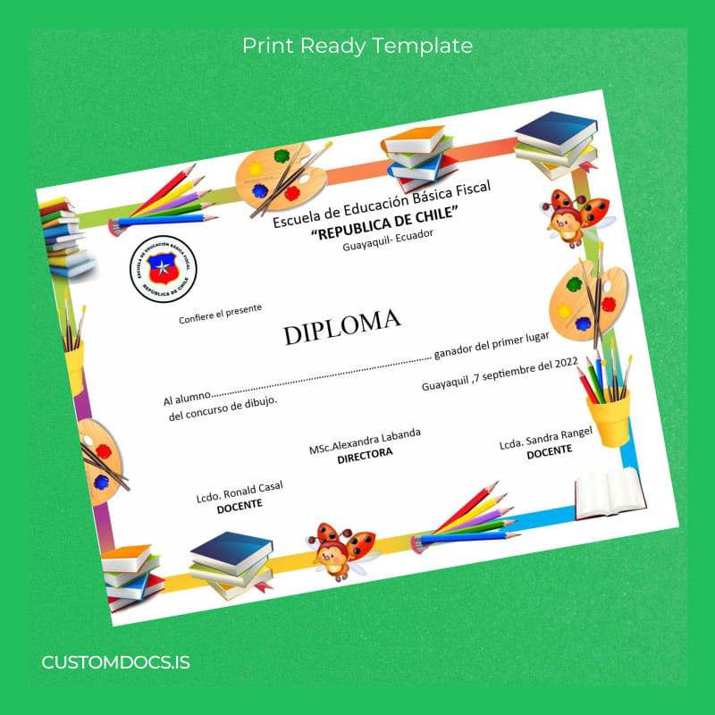 Download Ecuador Republic of Chile School Diploma Template – Word & PDF – Instant Digital File 3 Page