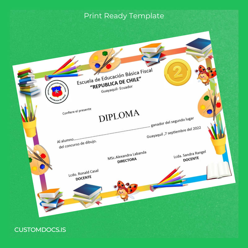 Be the first to review “Download Ecuador Republic of Chile School Diploma Template – Word & PDF – Instant Digital File 3 Page”
